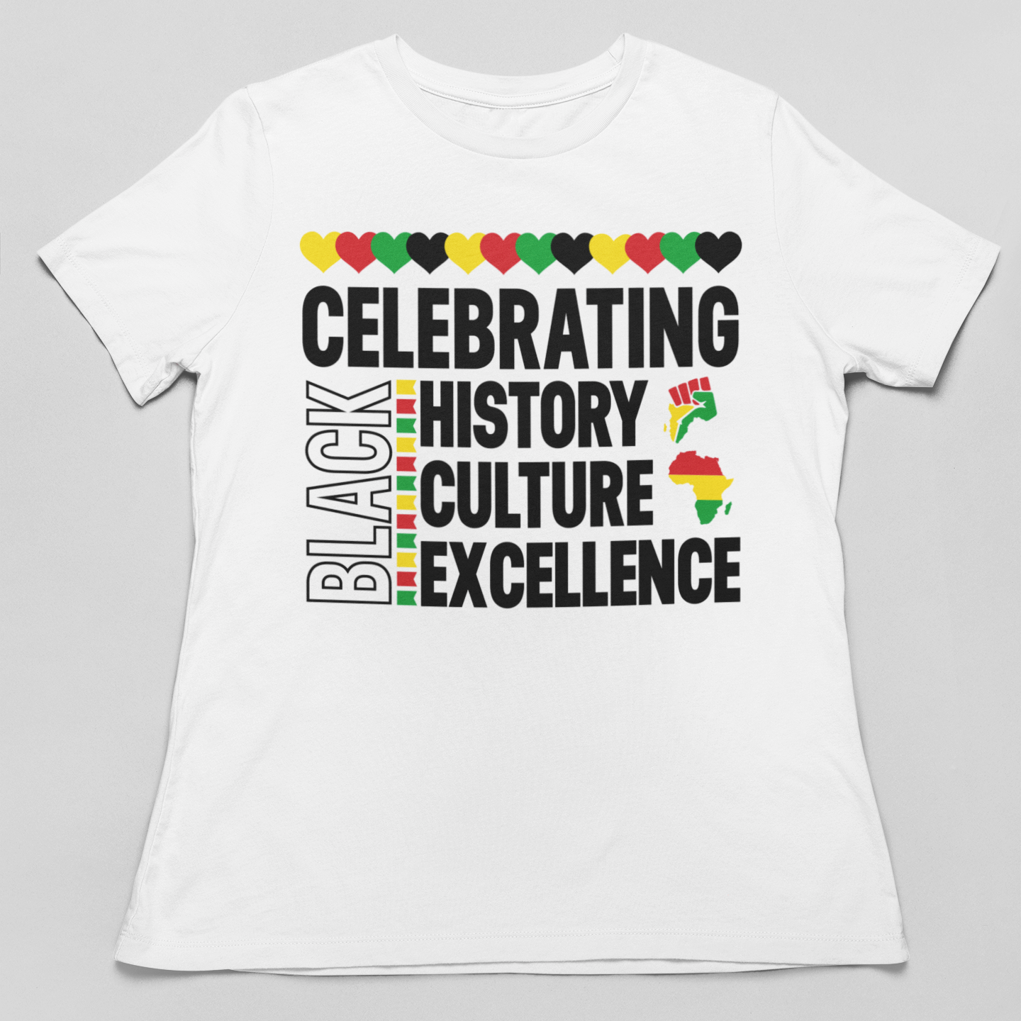 This premium t-shirt celebrates the rich culture, heritage, and excellence of the Black community. A bold, colorful design that honors the contributions and achievements of Black people throughout history.
