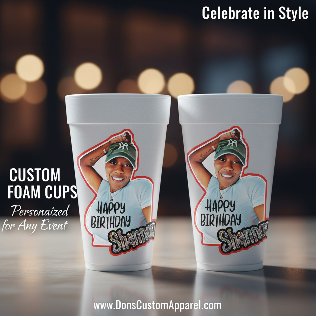 Transform your next party, wedding, birthday, or special event with personalized foam cups that showcase YOUR unique style. Our premium custom foam cups let you add photos, names, dates, and custom designs to create one-of-a-kind party favors your guests will love.