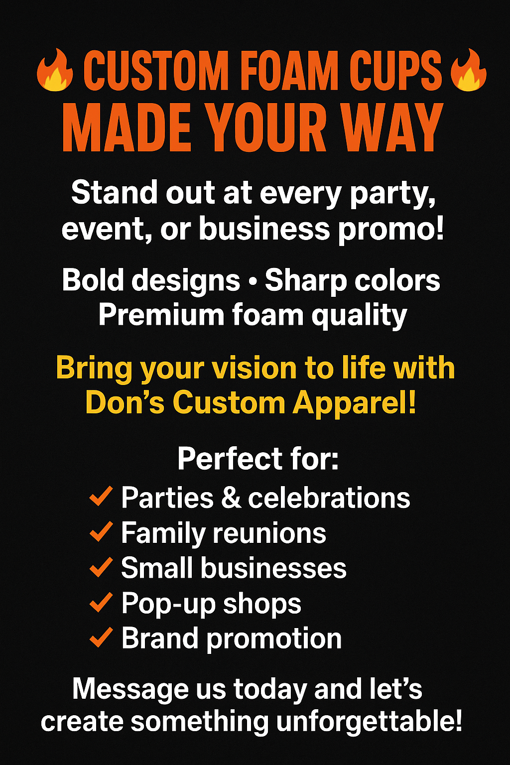 Make every sip special with our custom-made cups, designed just for you! Whether you’re celebrating a birthday, wedding, business event, or just want unique drinkware, we bring your vision to life.