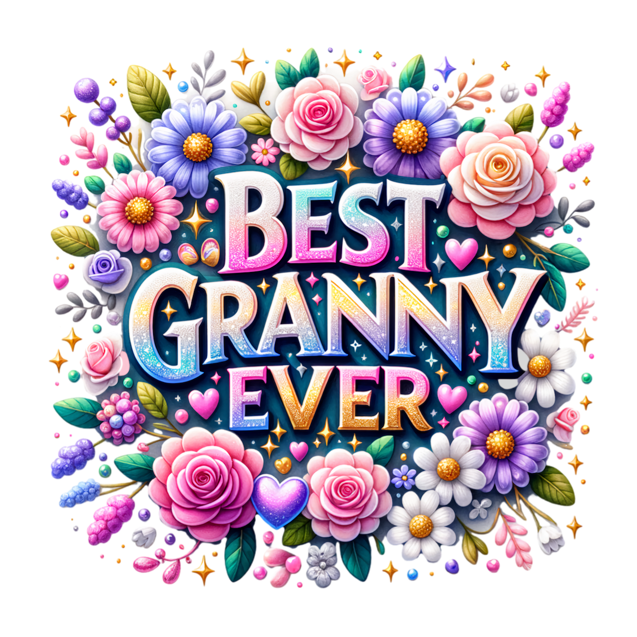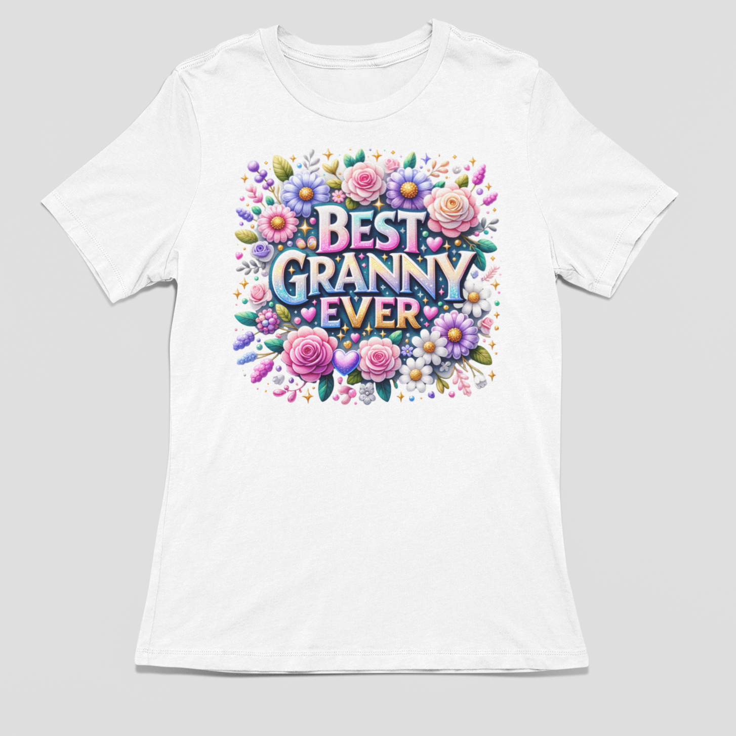 Granny deserves the world - celebrate her with this stunning Best Granny Ever Mothers Day shirt! Features a vibrant floral DTF print with a gorgeous glitter-look design.